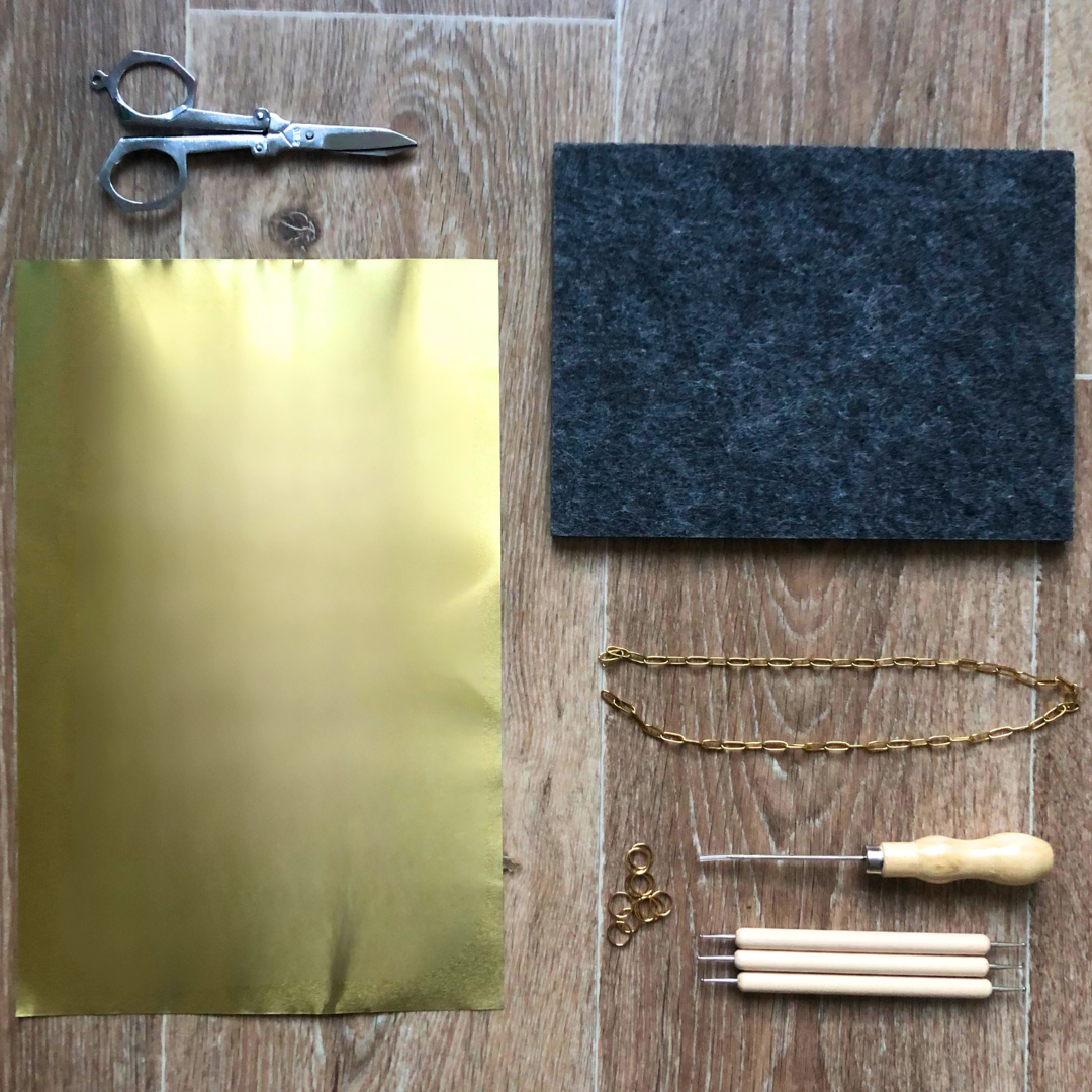 Dans cette box, tu découvriras l’art du métal à repousser, une technique artisanale qui permet de créer du relief et de donner vie à des motifs uniques sur une guirlande décorative.